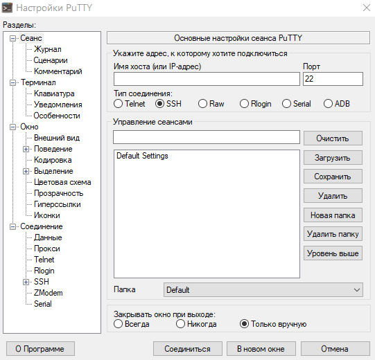 Думаю, следует сразу пояснить что такое PuTTY. Это приложение-клиент для различных протоколов удалённого доступа, включая SSH, Telnet, rlogin. Также имеется возможность работы через последовательный порт(консоль). В целом, очень гибкий инструмент с кучей настроек и возможностей. Можно, конечно, подключаться и с помощью командной строки, но на windows это вносит ряд ограничений начиная с отсутствия прокручивания терминала(мы можем видеть только несколько строк, а те, которые уходят вверх, уже посмотреть нельзя) и заканчивая отсутствием возможности создания пресетов и файлов истории.
