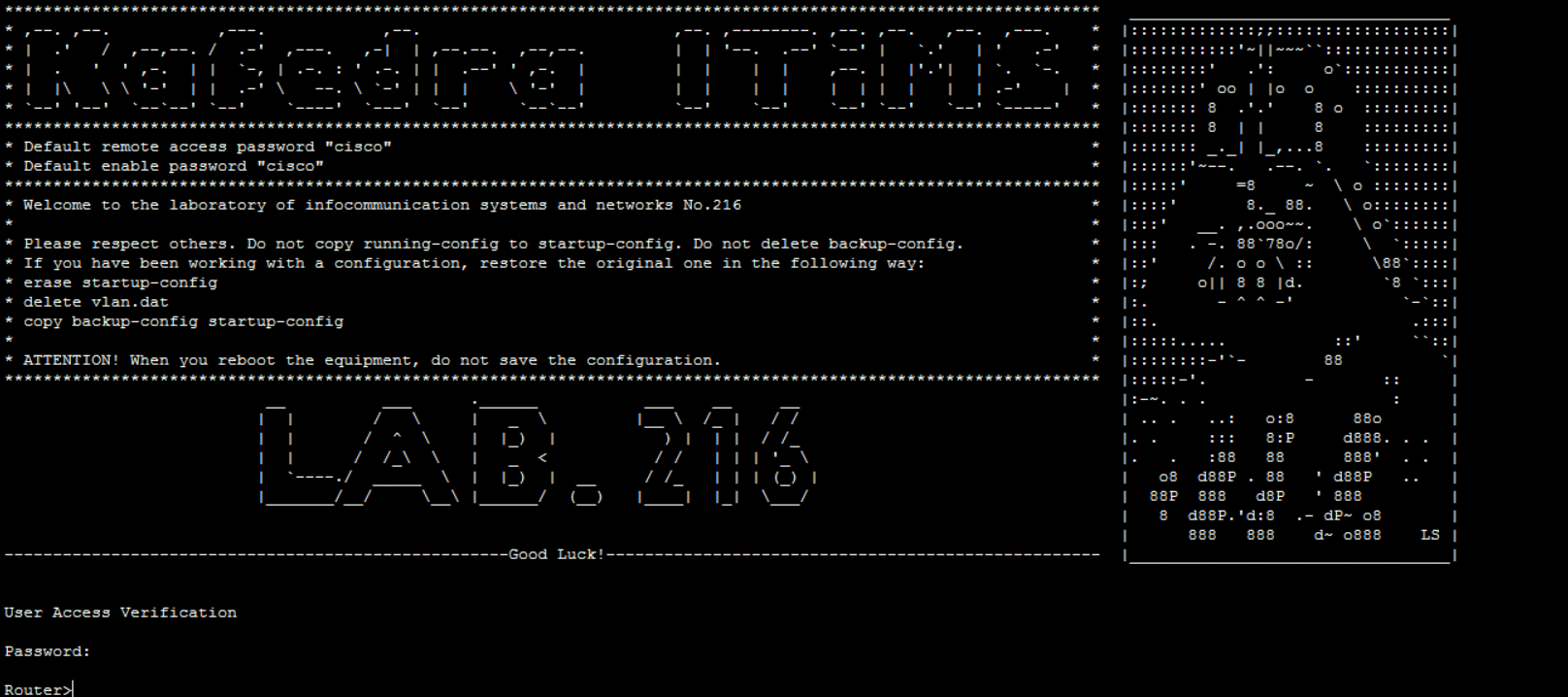 Например, требуется пароль для доступа в привилегированный режим 123456. Пример показан на рисунке 1.4.