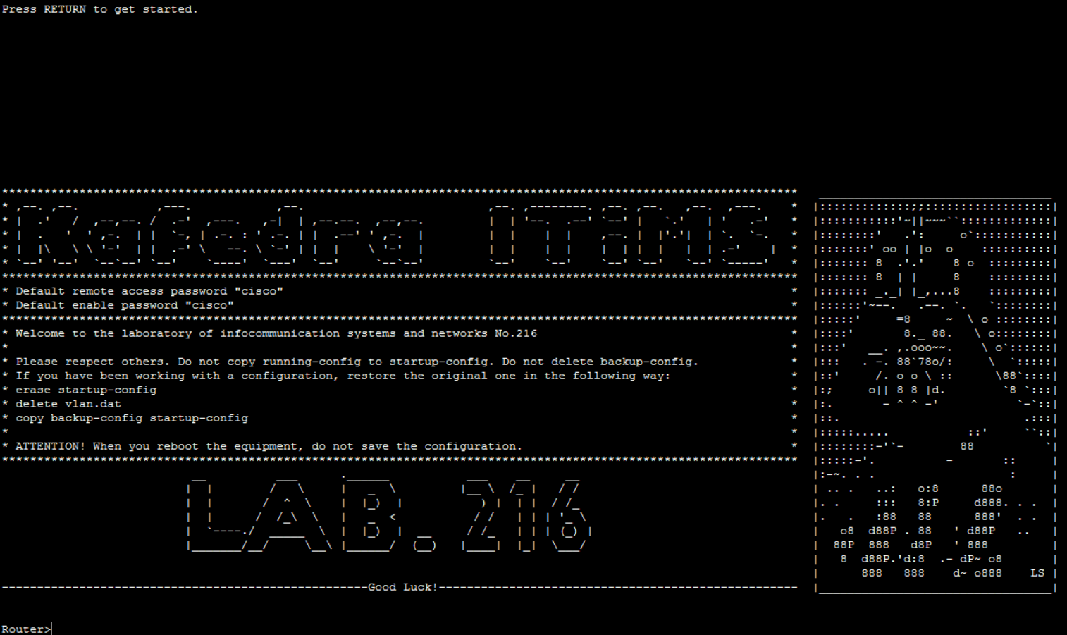 В данном курсе будем подключаться к оборудованию по протоколу удаленного доступа(виртуальный телетайп\уд\удаленка\заочка) Telnet через интерфейс командной строки(CLI\цлайка\терминал). Подробнее об этом уже было рассказано на занятиях, НО если что-то не поняли, то лучше не стесняться и подойти к нам лично. мы все еще раз объясним, ибо это важно понимать и уметь применять, т.к. по сути это буквально ваша будущая профессия и подготовка к части демо экзамена. Это относится не только к подключению, но и ко всем остальным темам и моментам. Не поняли - подходим и спрашиваем. Тем более, что у нас есть время консультаций, в которое мы можем рассмотреть те или иные моменты более детально. То же самое относится и к вопросам, так или иначе относящиеся к оборудованию, которые интересуют лично вас и возникшие в течении прохождения сего курса. Даже если мы чего-то сами не помним(такое тоже случается), мы с вами найдем ответ(в том числе опытным путем, экспериментировать есть где), ну, и, собственно, покажем где и как его искать, ведь поиск инфы по оборудованию и решение каких-то затыков вас ждет уже на работе. И лучше учиться этому сейчас, нежели потом сесть в лужу.