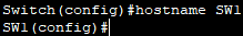 Например, нужно настроить сетевое имя коммутатора SW1. После выполнения команды в командной строке появится заданное имя. Команда показана на рисунке 1.1.